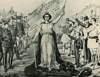 À partir de 1908, de nombreux officiers se réunirent dans la Ligue militaire , dirigée par un colonel d'artillerie, Nikolaos Zorbas. Elle ne désirait au départ qu'une augmentation du budget de l'armée et une réorganisation sur le modèle de l'armée ottomane qui avait triomphé en 1897. La Ligue exigeait aussi que les membres de la famille royale, considérés comme responsables de cette défaite, fussent chassés de l'armée[3],[4]. Pour imposer ses vues, elle finit par organiser un coup d'État. Il partit des casernes de Goudi dans la nuit du . Les insurgés firent alors connaître leurs revendications. Elles avaient évolué. Une partie restait purement militaire. Une autre partie était politique et sociale exigeant des réformes du pays en profondeur. Ils ne demandaient pas l'abdication du roi, ni la dissolution de la monarchie. Ils ne souhaitaient pas non plus de dictature militaire ni même de changement de gouvernement[5],[4]. Une grande manifestation populaire, organisée et encadrée par les militaires, se déroula dans les rues d'Athènes le . Les manifestants soutenaient les revendications politiques et sociales des militaires, comme l'impôt sur le revenu ou la titularisation des fonctionnaires (pour qu'ils ne dépendent plus des politiques)[6].