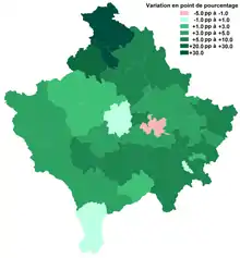 | Parti démocratique turc du Kosovo (KDTP) | 6 496 | 0,74 | 2 | |||||||||||