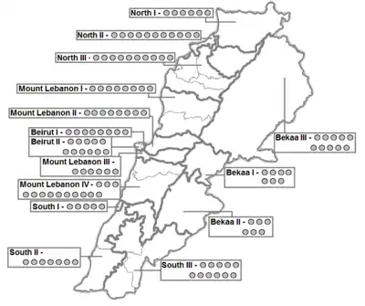 La Chambre des députés est l'unique chambre du parlement libanais. À la suite d'un changement de la loi électorale en , ses 128 députés sont élus pour quatre ans au scrutin proportionnel dans quinze circonscriptions de cinq à treize sièges, dont sept circonscriptions subdivisées en districts électoraux. Les électeurs ont également la possibilité d'utiliser un vote préférentiel pour un candidat au sein de la liste qu'ils choisissent. L'ensemble des candidats doivent se regrouper dans ces dernières, composées d'un minimum de trois candidats, ce qui rend impossible les candidatures sans étiquette[1].