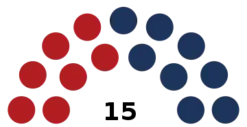 | 15 sièges au Landtag (majorité absolue : 8 sièges) | ||||||||||||||