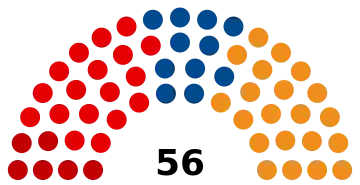 | 56 sièges de la Chambre des députés (Majorité absolue : 29 sièges) | ||||||||||||||
