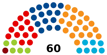| 60 sièges de la Chambre des députés (Majorité absolue : 31 sièges) | ||||||||||||||