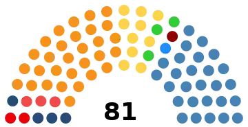 | 81 sièges du Parlement (Majorité absolue : 41 sièges) | ||||||||||||||