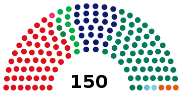 | 150 sièges de la Seconde Chambre (Majorité absolue : 76 sièges) | ||||||||||||||