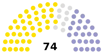 | 74 sièges de la Chambre des représentants (Majorité absolue : 38 sièges) | ||||||||||||||