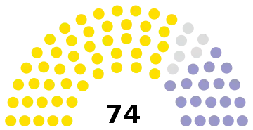 | 74 sièges de la Chambre des représentants (Majorité absolue : 38 sièges) | ||||||||||||||