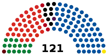 | 121 sièges de la Chambre des représentants (Majorité absolue : 61 sièges) | ||||||||||||||