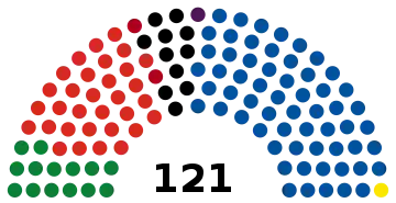 | 121 sièges de la Chambre des représentants (Majorité absolue : 61 sièges) | ||||||||||||||