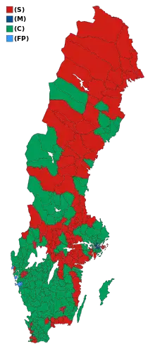 | Parti du centre | Thorbjörn Fälldin | 1 295 246 | 25,1 % | 90 / 350 | +19 | |