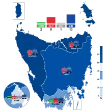 Peter Gutwein | 50,26 % des voix 13 députés | |