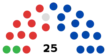 | 25 sièges à l'Assemblée (majorité absolue : 13 sièges) | ||||||||||||||