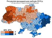 Alors que la Crimée et les zones du Donbass contrôlées par les séparatistes ne participent pas au scrutin, la participation s'affiche en baisse dans les autres anciens fiefs électoraux du président déchu, s'établissant notamment à 46 et 48 % dans les régions d'Odessa et de Kharkiv contre 60 % au niveau national[6]. Porochenko réunit pourtant une majorité de voix dans ces régions du sud et de l'est, malgré un relativement bon score de Mikhaïl Dobkine du Parti des régions et de Serhiï Tihipko.