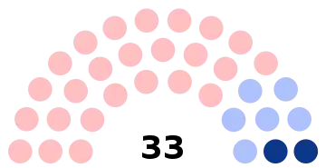 - 33 sièges à pourvoir au conseil municipal (population légale 2011 : 17 106 habitants)