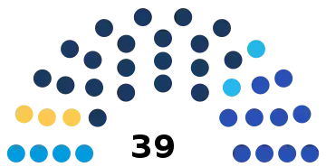 | Parti et tête de liste élue | Voix | % | Sièges | |||