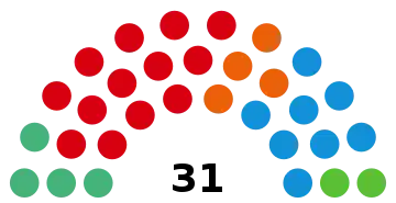Le nombre de conseillers municipaux est établi en fonction de la population de la commune[4]. Les communes de plus de 100 001 habitants comptent 25 conseillers et un conseiller supplémentaire pour 100 000 habitants ou fraction, ainsi qu'un conseiller supplémentaire si le total de conseillers municipaux constitue un nombre pair. Séville comptant officiellement 688 711 habitants recensés à la fin de l'année , elle dispose de 31 conseillers municipaux.