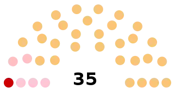 - 35 sièges à pourvoir au conseil municipal (population légale 2017 : 21 945 habitants)