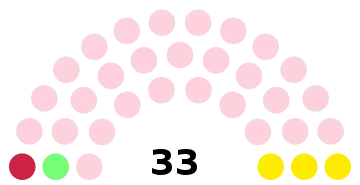 - 33 sièges à pourvoir au conseil municipal (population légale 2017 : 19 878 habitants)