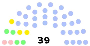 - 39 sièges à pourvoir au conseil municipal (population légale 2017 : 38 578 habitants)