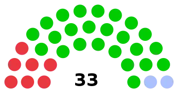 - 39 sièges à pourvoir au conseil municipal (population légale 2017 : 30 929 habitants)
