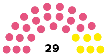 - 29 sièges à pourvoir au conseil municipal (population légale 2017 : 9 241 habitants)