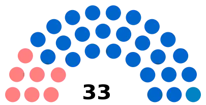 - 33 sièges à pourvoir au conseil municipal (population légale 2017 : 13 290 habitants)