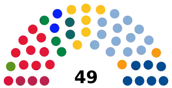 | Autres partis et votes blancs | 5,40 | 0 / 49 |