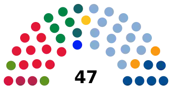 | Autres partis et votes blancs | 2,82 | 0 / 47 | ||||
