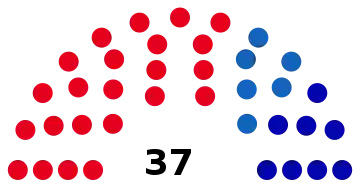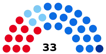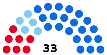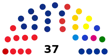 | Partis | Votes | % | +/- | S. | +/- | Coalition | ||