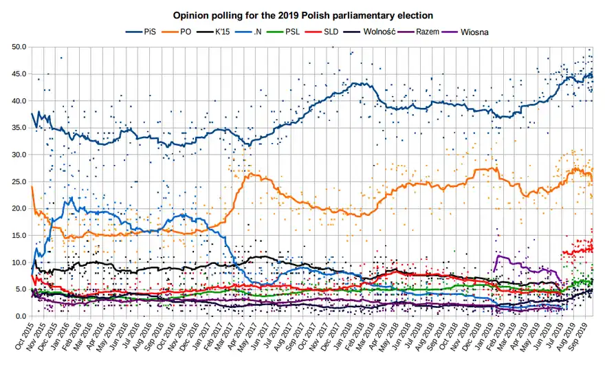 | 10 octobre 2019 | Pollster | 1059 | 45,4 | 27,2 | 14,3 | 7,0 | 4,7 | 1,4 |