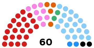 | 60 sièges du conseil régional (Majorité absolue : 31 sièges) | ||||||||||||||