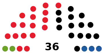 | 36 sièges du Landtag (Majorité absolue : 19 sièges) | ||||||||||||||
