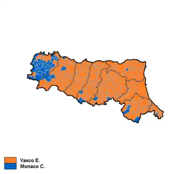 | Partis | Bologne | Ferrare | F-C | Modène | Parme | Plaisance | Ravenne | RdÉ | Rimini | Total | ||||||||||||