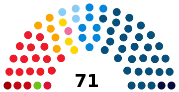 | Partis | Votes | % | +/- | S. | +/- | Coalition | ||