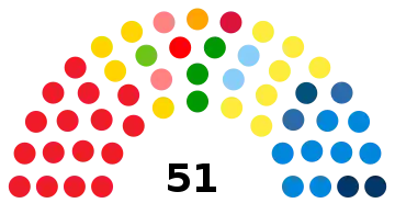 | 51 sièges du conseil régional (Majorité absolue : 26 sièges) | ||||||||||||||