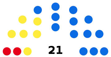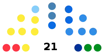 Le conseil régional compte un total de 21 membres : 20 conseillers élus à la proportionnelle et le président de la junte.
