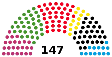 | 147 sièges de la Chambre des députés (Majorité absolue : 74 sièges) | ||||||||||||||