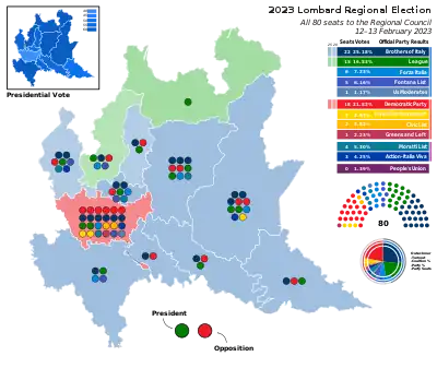 | Attilio Fontana | 1 774 477 | 54,67 | 1 | Frères d'Italie (FdI) | 725 402 | 25,18 | 22 | |||||||