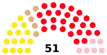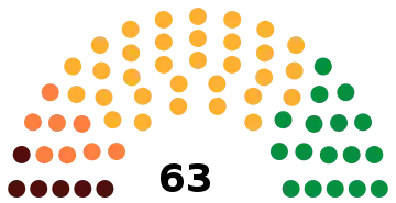 | Nombre de sièges | Seuil de qualification pour le second tour | Seuil de fusion de listes | Prime majoritaire | Sections électorales | |