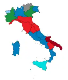 La loi Tatarella[1] réglemente, dans de nombreuses régions, le mode de scrutin. Elle se base sur un système mixte, au 4/5e proportionnel, et pour 1/5e majoritaire plurinominal. Toutefois, en Toscane, dans les Marches, dans les Pouilles et en Calabre, le mode de scrutin est régi par des lois spécifiques et ces régions n'appliquent donc plus la loi nationale.