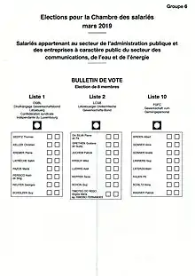 Bulletin de vote pour les élections sociales au Luxembourg de mars 2019.