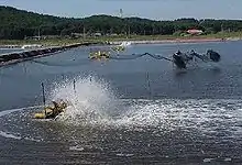 Bien qu'ils diminuent l'impact direct sur la mangrove, les élevages intensifs ont d'autres inconvénients. Leurs effluents riches en éléments nutritifs (les aliments industriels pour crevettes se désintègrent rapidement, seulement 30 % sont réellement consommés par les crevettes, le reste est perdu[40]) sont généralement déversés dans l'environnement, déséquilibrant gravement l'équilibre écologique. Ces eaux usées contiennent des taux significatifs d'engrais chimiques, de pesticides (utilisés pour désinfecter les étangs entre deux usages) et d'antibiotiques qui provoquent une pollution grave de l'environnement. En outre, ce rejet d'antibiotiques les introduit dans la chaîne alimentaire et augmente le risque de voir des organismes devenir antibiorésistants[41].