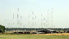La surface nécessaire à une antenne munie de son plan de sol additionnel, peut être considérable, particulièrement en VLF. La clôture de protection nécessaire peut être plus coûteuse que l’antenne elle-même.
