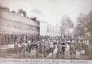 À cheval[4] en tête de l'escorte, Gois les fait conduire rue Haxo et les fait exécuter[1],[2]. En chemin, la foule grossit et crie « À mort ! ». Des membres du Comité central, Georges Arnold, Serraillier, Jules Vallès, Frédéric Cournet, André Alavoine et Eugène Varlin tentent sans succès d'empêcher ce massacre, qui a lieu dans une grande confusion. Sont fusillés 10 prêtres et religieux, 35 gardes de Paris et gendarmes et 4 anciens dénonciateurs du Second Empire[3],[5].