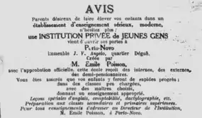 - « Une nouvelle école », sur Gallica, La Voix du Dahomey, (consulté le )