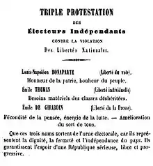 - Les Affiches rouges, reproduction exacte et histoire critique de toutes les affiches ultra-républicaines placardées sur les murs de Paris depuis le 24 février 1848, Paris, Giraud et Dagneau, 1851, p. 271-273.