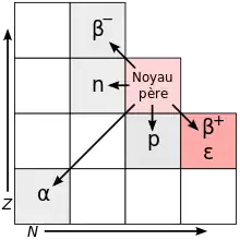L'émission de positon ou désintégration β+ est un type de désintégration radioactive β dans laquelle un proton est converti en neutron, avec émission d'une particule β+ (positon) et d'un neutrino[1]: