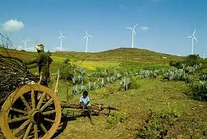 L'énergie éolienne devient peu à peu une source d'énergie importante en Inde : l'éolien fournissait 4,7 % de la production électrique indienne en 2021.