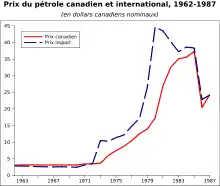 Malgré ses ressources pétrolières connues et sa capacité de production — qui augmente de 300 000 à 437 000 barils par jour entre 1955 et en raison de la crise de Suez —, le Canada demeure un importateur net de pétrole. La rareté de l'infrastructure de transport entre régions productrices et consommatrices ne permet pas de développer les deux tiers du potentiel[11].