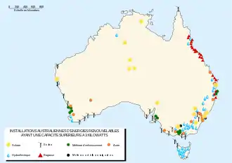 - Quinzième inventaire - Édition 2013 - La production d'électricité d'origine renouvelable : détails par région et par pays : Australie, site Observ'ER consulté le 12 mai 2014.