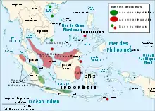L'Indonésie se classait en 2013 au 24e rang mondial parmi les producteurs de pétrole ; elle a adhéré à l'OPEP en 1962 et en est sortie en 2009, étant devenue importateur net[e 5].